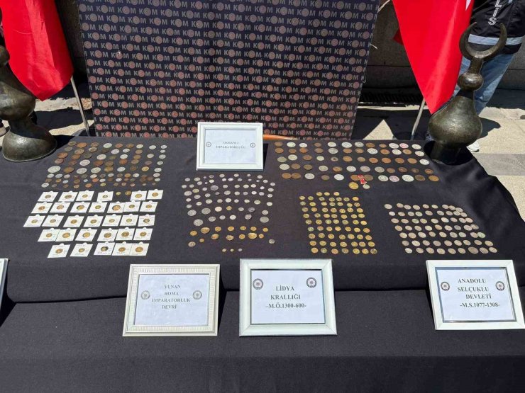 Baskın yapılan adreslerdeki aramalarda, Lidyalılara ait olduğu değerlendirilen ve M.Ö. 7'nci yüzyıla tarihlenen sikkelerin de içinde yer aldığı, Roma, Bizans, Abbasi, Osmanlı ve Anadolu Selçuklu dönemlerine ait toplam bin 143 sikke ele geçirildi.