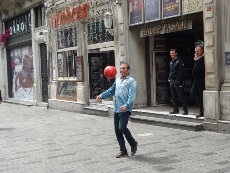 İstiklal Caddesi'nin 1 Mayıs Emek ve Dayanışma Günü kapsamında güvenlik gerekçesiyle kapatılmasını fırsat bilen esnaf top oynayarak keyifli anlar yaşadı. Cadde esnafının oyun keyfi kameraya yansıdı.