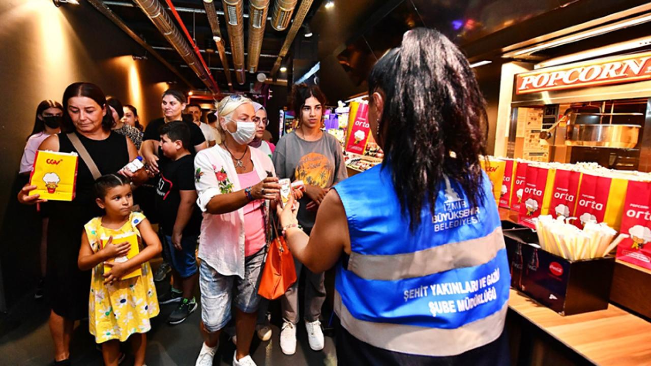 İzmir Büyükşehir Belediyesi şehit ve gazi yakını 20 çocuğu ve ailelerini sinemayla buluşturdu. Çocuklara eşlik eden Şehit Yakınları ve Gaziler Şube Müdürü Güneri Onur Çeliker, “Müdürlük olarak en büyük amaçlarımızdan biri şehit yakınları ve gazilerimizin yüzlerinde tebessüm oluşturmak” dedi.