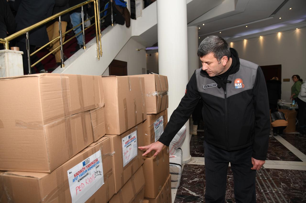 Kadıköy Belediyesi’nde depremin hemen ardından kriz masası kuruldu. Çoğu üniversite öğrencisi gönüllü gençlerden, Kadıköylülerden ve belediye personelinden oluşan ekip yardım malzemelerini tasnifleyerek afet noktalarına gönderimlerini sağlıyor. Yardım paketleri AFAD’tan gelen yönlendirmelerle Hatay, Kahramanmaraş, Adıyaman, Malatya ve Gaziantep illerine kara ve deniz yoluyla ulaştırılıyor. Kadıköy Belediyesi sosyal medya hesaplarından yaptığı bir paylaşımla ihtiyaç duyulan malzemeleri sıraladı ve bu malzemeler dışındakiler için depoların dolduğunu duyurdu. Sadece kabul edilecek yardım malzemeleri kuru bakliyat, konserve, bebek bezi, bebek maması, biberon, kadın pedi, ıslak mendil ve sıvı sabun.
