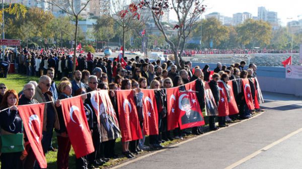 Kadıköylüler,ölümünün 75. yılında Ulu Önder Mustafa Kemal Atatürk’ü anmak için 6.5 km’lik sahil boyunca el ele tutarak "Ata’ya Saygı Zinciri" oluşturdular.