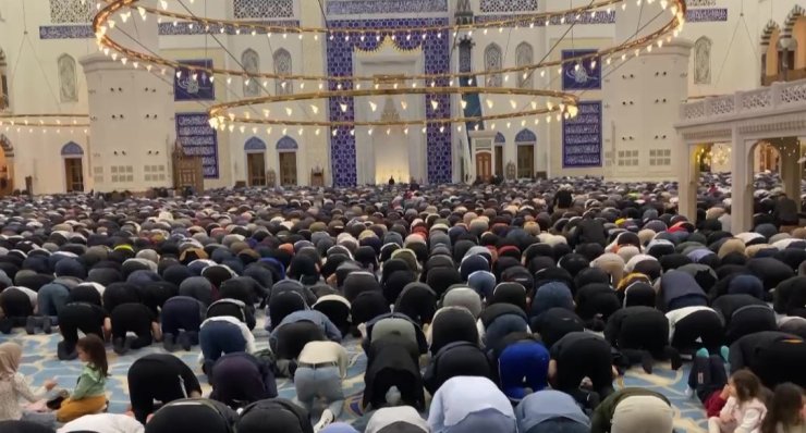 Ezanının okunmasının ardından yatsı ve teravih namazı kılındı. Öte yandan, caminin giriş ve çıkışlarında yoğunluk oluştu. Caminin dijital mahyalarında Kadir Gecesi ile ilgili mesajlar yer aldı.