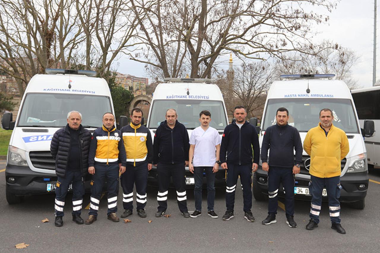Yatağa bağımlı olan hastalar uzman sağlık personelleri yardımıyla poliklinik muayenelerine hasta nakil ambulansları ile götürülüyor. Hastane işlemleri bittiğinde de vatandaşların evlerine geri dönüşü yine Kâğıthane Belediyesi hasta nakil ambulanslarıyla sağlanıyor.