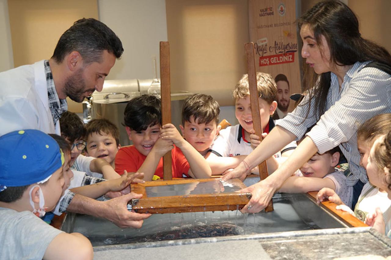 Kâğıthane Belediyesi’nin El Yapımı Kâğıt Atölyesi’nde çocuklar geri dönüşümün yalnızca bir çevre hareketi değil, aynı zamanda yaratıcı bir üretim süreci olduğunu keşfediyor. Kâğıthane Belediyesi bu özel atölye ile çocuklara çevreye duyarlı birey olma bilincini kazandırmayı ve doğayı koruma farkındalığını artırmayı hedefliyor.