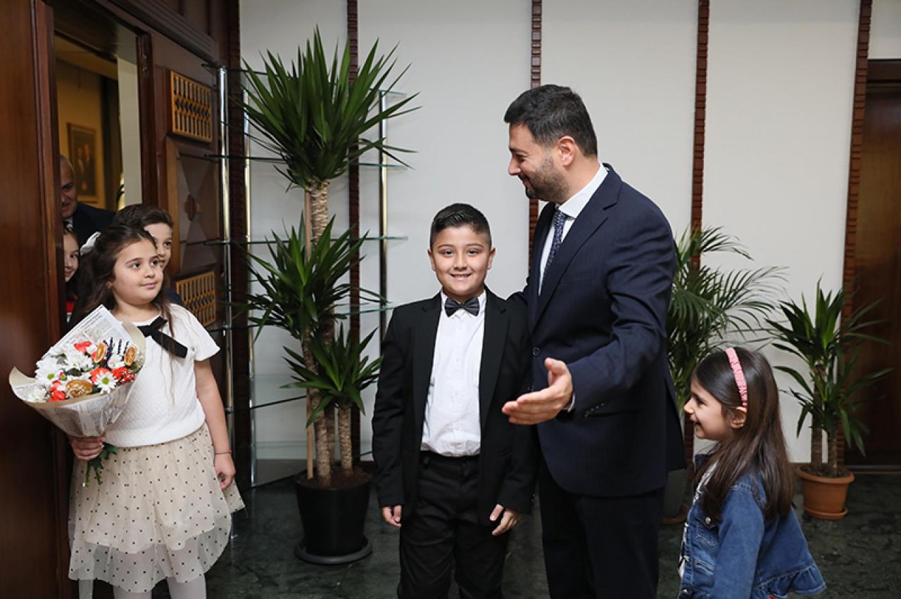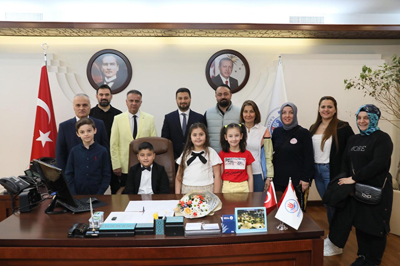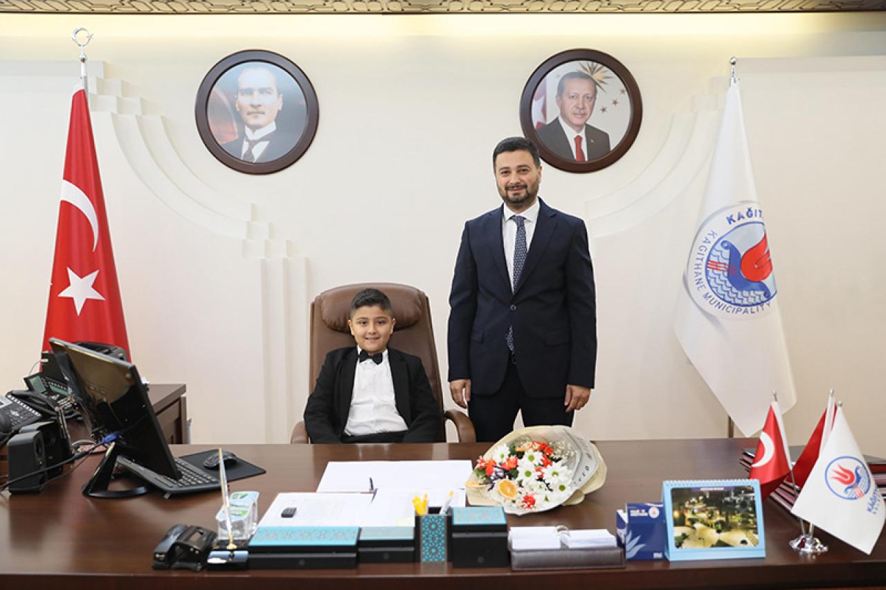 Başkan Öztekin; 23 Nisan Ulusal Egemenlik ve Çocuk Bayramı’nda Kâğıthane Belediye Başkanlığı görevini İsmail Erez İlkokulu öğrencisi Taha Mert Aydın’a devretti.