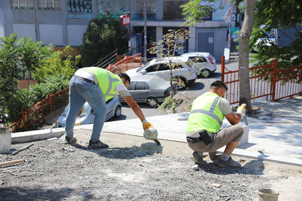 İlçedeki yaya yollarında sürdürülen çalışmalar kapsamında, Çeliktepe Mahallesi Dutluk Caddesi’nde bakım ve onarım uygulamaları hayata geçiriliyor. Kaldırım taşları yenileniyor, bozulmuş zeminler onarılıyor ve geçiş güvenliğini artıracak düzenlemeler yapılıyor.