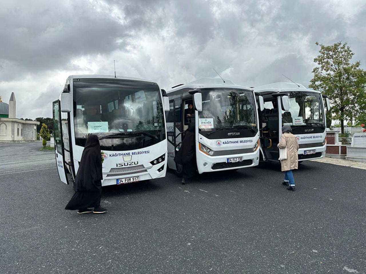 Ayazağa ve Kilyos mezarlıklarını ziyaret edecek olan servisler Kâğıthane’nin tüm mahallelerini kapsayacak şekilde ortak alanlardan hareket ediyor.