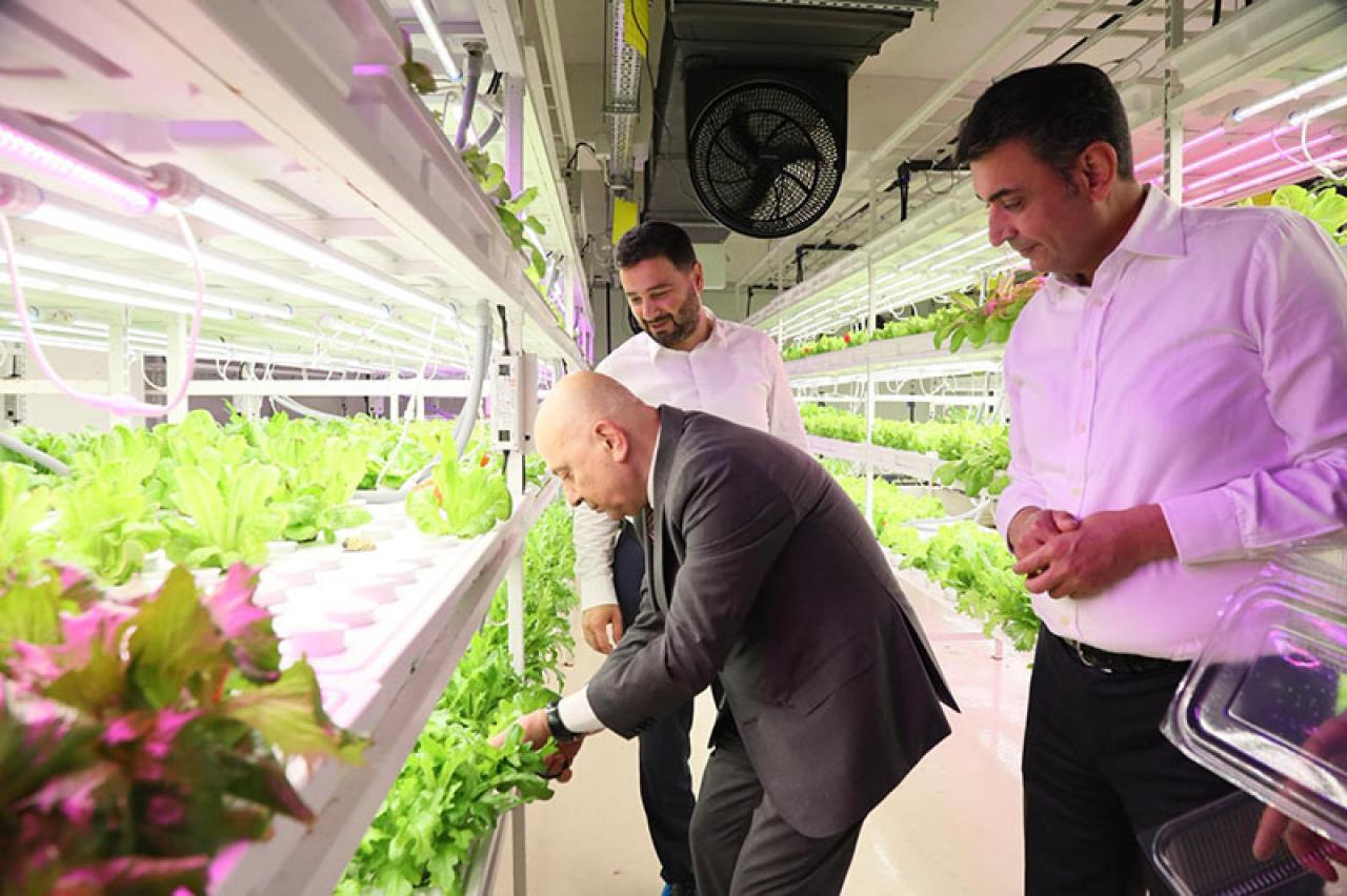 Başkan Mevlüt Öztekin, ziyaret sırasında yaptığı açıklamada, “Şu anda dünyanın en derin ikinci Kapalı Dikey Tarım ve AR-GE Merkezindeyiz. Burada marul ve fesleğen gibi çeşitli özel ürünler üretiyoruz. Topraklı tarımda üç ayda alınacak ürünü burada bir ayda alabiliyoruz. Su verimliliği açısından ise yüzde 99 oranında tasarruf sağlıyoruz. Bu sistem geleceğin tarımı açısından önemli bir model olacak” dedi.