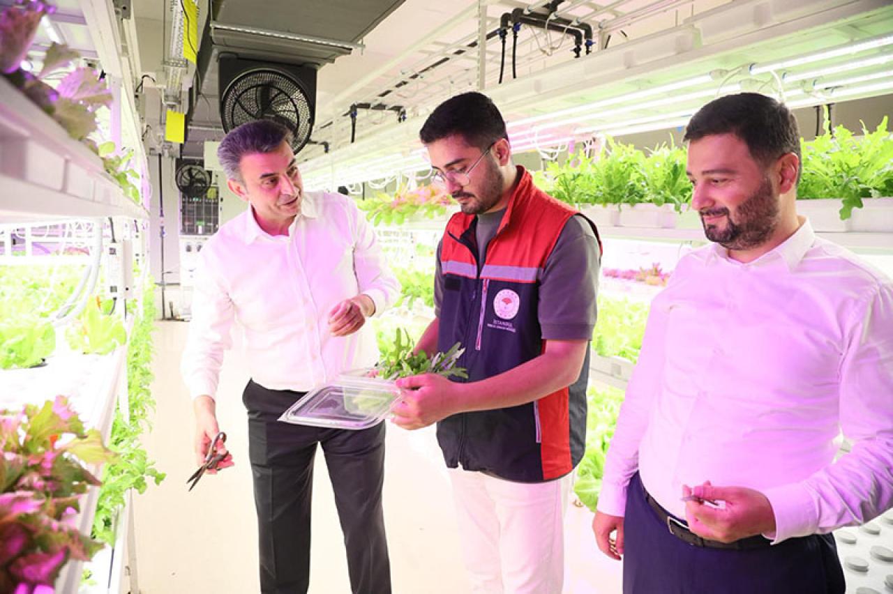 Kâğıthane Belediyesi, İl Tarım ve Orman Müdürlüğü ile İGSAŞ iş birliğinde hayata geçirilen Kapalı Dikey Tarım ve AR-GE Merkezi, geleceğin tarım teknolojilerini Kâğıthane’ye taşıyor. Kâğıthane Belediye Başkanı Mevlüt Öztekin, Kâğıthane Kaymakamı Yüksel Kara ve İstinye Üniversitesi Rektörü Prof. Dr. Erkan İbiş ile birlikte merkezi ziyaret ederek çalışmalar hakkında bilgi aldı.