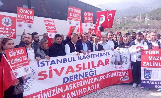Başkan Özcan Aslan yaptığı açıklamada, “Sivaslılar Deneği olarak Cuma akşamı 43 kişilik bir otobüs ile Kâğıthane’den, Hatay'a hareket ettik. Sabaha karşı Hatay'a ulaştık. Askerlerimize, gazilerimiz, savaşan ve nöbet tutan Mehmetçiklerimize destek olmak için buradayız onlarla gurur duyuyoruz. Sivil halkada zarar vermeden, yapmış oldukları büyük mücadele ile oradaki terör örgütlerini tek tek ortadan kaldıran askerlerimizi kutluyoruz” dedi.