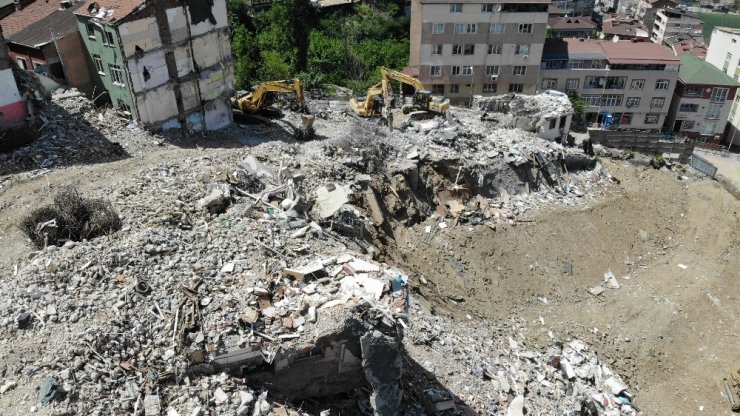 Çalışmaların ardından yıkım kararı verilen 24 binanın yıkımına geçtiğimiz hafta başlanmıştı. Geçen haftadan bu yana devam eden iş makineleriyle yapılan yıkım çalışmalarında yıkım kararı verilen binalardan 14'ünün yıkımı tamamlandı. Yıkım çalışmaları düzenli aralıklarla devam ederken, oluşan enkaz ise hafriyat kamyonlarıyla kaldırıldı. Öte yandan yıkım çalışmaları havadan görüntülendi. Çalışmaların düzenli aralıklarla devam edeceği öğrenildi.