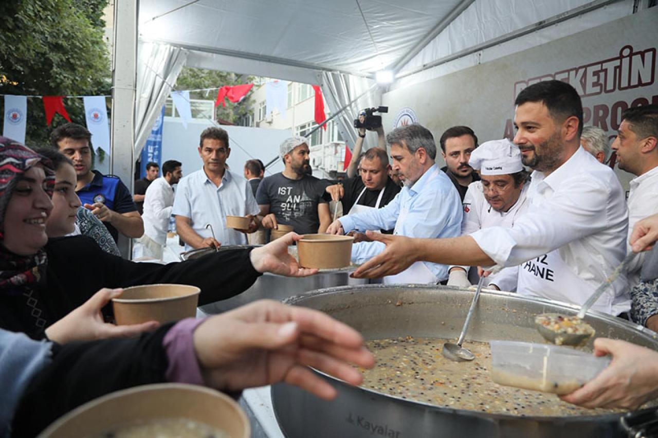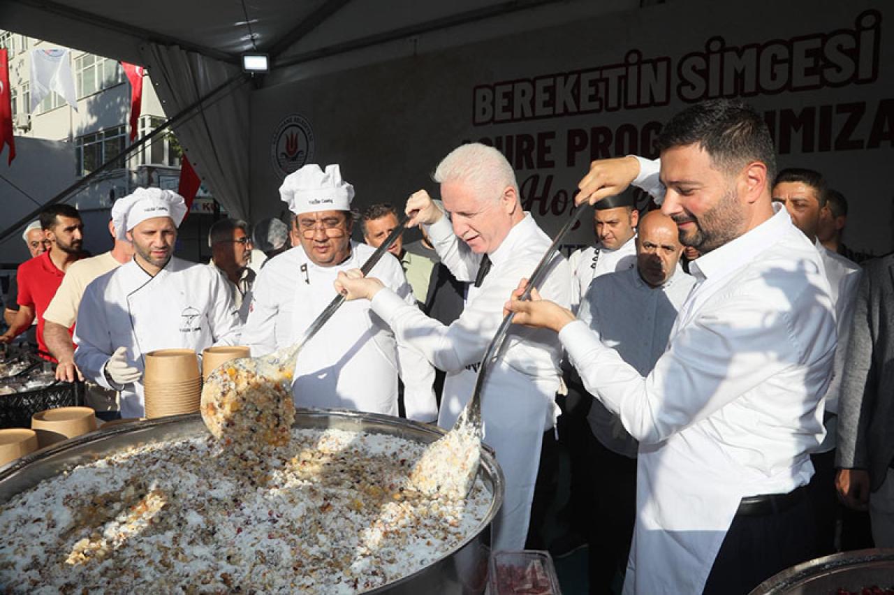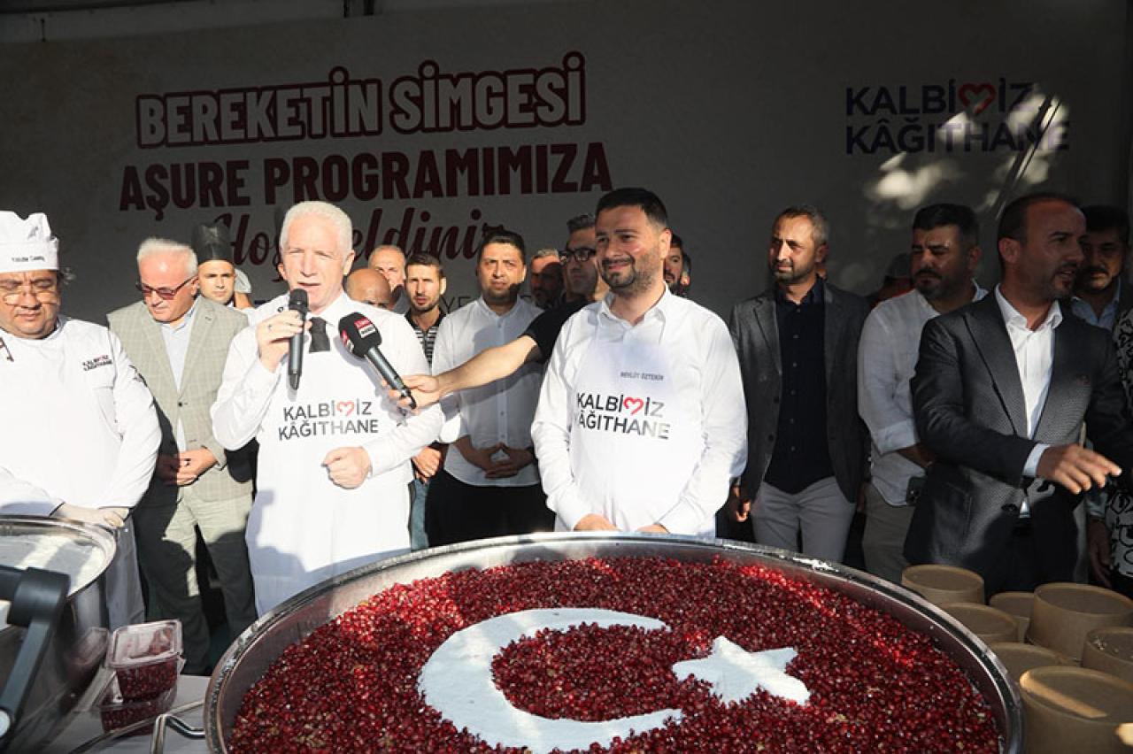 Kağıthane Belediye Başkanı Mevlüt Öztekin'in ev sahipliğinde gerçekleşen programa İstanbul Valisi Davut Gül, ilçe siyasi parti temsilcileri ve sivil toplum kuruluşlarının yöneticileri katıldı. Ay-yıldız motifleri ve "Kalbimiz Kağıthane" yazılı özel tasarımlı aşure kazanları, hem lezzeti hem de görsel şöleniyle büyük beğeni topladı.