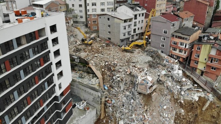 Kağıthane'de istinat duvarının ve bir binanın çökmesi sonucu semtte hasar gören ve yıkım kararı verilen 24 binanın yıkımına başlandı. Hasarlı binaların iş makineleri tarafından yıkımı havadan görüntülendi.