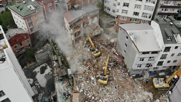 Çalışmaların ardından yıkım kararı verilen 24 binanın iş makineleriyle yıkımına bugün başlandı. Hasarı daha fazla olan binaların yıkımı önce yapılıyor. Aynı anda 2 binanın yıkıldığı yerde çevredeki vatandaşların tozdan etkilenmemesi için hortumla su fışkırtılıyor. Öte yandan yıkım çalışmaları insansız hava aracı ile havadan görüntülendi. Çalışmaların düzenli aralıklarla devam edeceği öğrenildi.