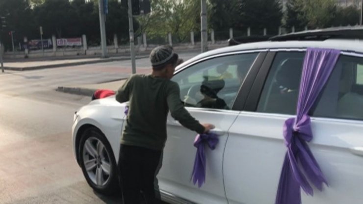 Kağıthane'de kırmızı ışıkta duran gelin arabasının önünü kesen çocuklar adeta terör estirdi. Bahşiş alabilmek için aracın üstüne çıkan çocuklardan biri aracın önüne eğilerek gitmesini engelledi. Damadın yaşadığı korku dolu o anlar kameralara yansıdı.