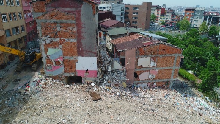 Kağıthane’de yıkılan binaların enkaz alanı havadan görüntülendi