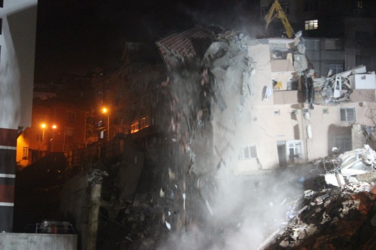 Öte yandan yıkım çalışmaları sürerken çevredeki diğer binaların zarar görmemesi için inşaat temelinin toprakla doldurulma çalışmaları sürüyor. Evlerinden tahliye edilen bazı vatandaşlar, yıkım çalışmalarını yerinde izledi.