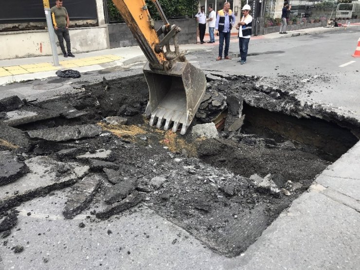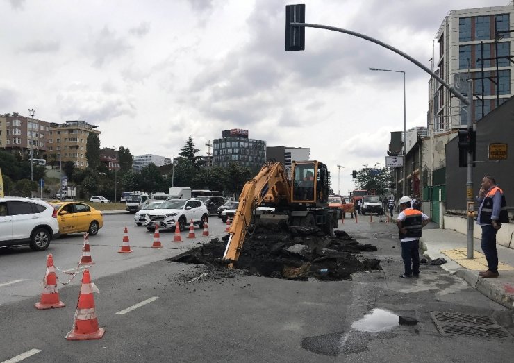 Kağıthane'de yağış sonrası cadde üzerine çökme meydana geldi.