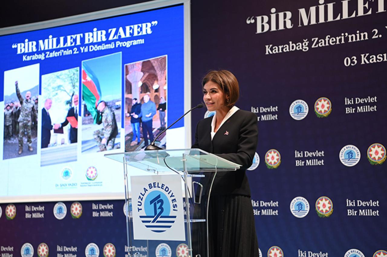 Azerbaycan Cumhuriyeti Başkonsolosu Narmina Mustafayeva ise,” Çok heyecanlıyım. Bu sevinci iki yıldır yaşıyoruz. Ama yine de yüreğimizdeki o sevinç hisleri hiç silinmiyor. Gün geçtikte daha da alevleniyor. Bizim 44 günlük vatan savaşındaki zaferimizin ikinci yıl dönümünü kutluyoruz. Çok sağ olsun, Tuzla Belediye Başkanı Dr. Şadi Yazıcı’nın bütün destekleri ile bugünkü etkinliğimizi kutlayacağız. Bu yalnız bizim zaferimiz değil, Türkiye’nin ve Azerbaycan’ın kardeşliğinin zaferidir” dedi.