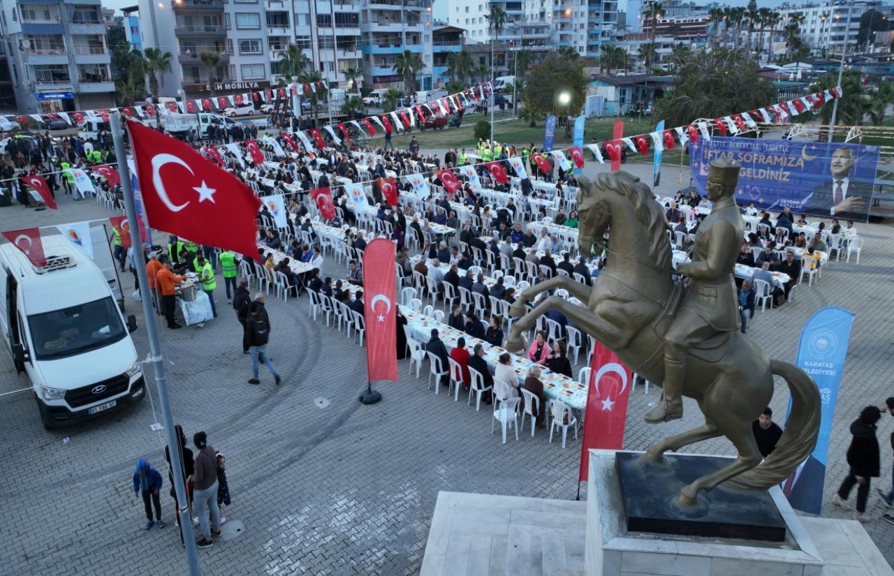 Karataş Belediye Başkanı Ali Bedrettin Karataş, AdanaBüyükşehir Belediye Başkanı Zeydan Karalar’a, katılımın çok yüksek olduğu iftarprogramıyla, Ramazan Ayı’nın ve Kadir Gecesi’nin manevi atmosferindeKarataşlıları bir araya getirdiği için teşekkür etti.