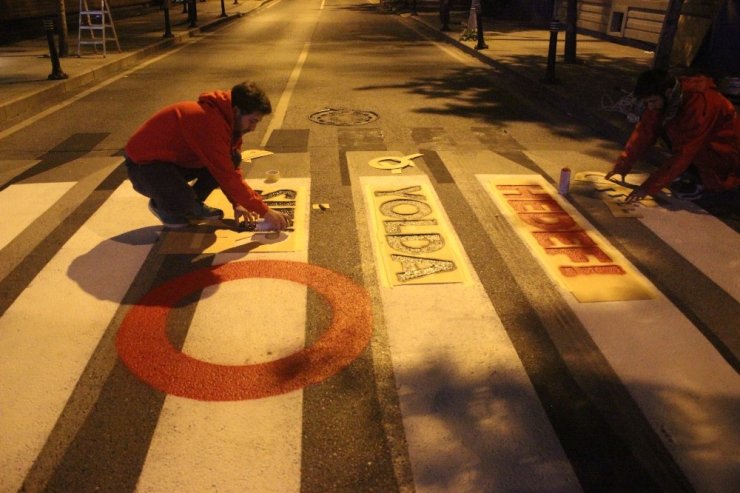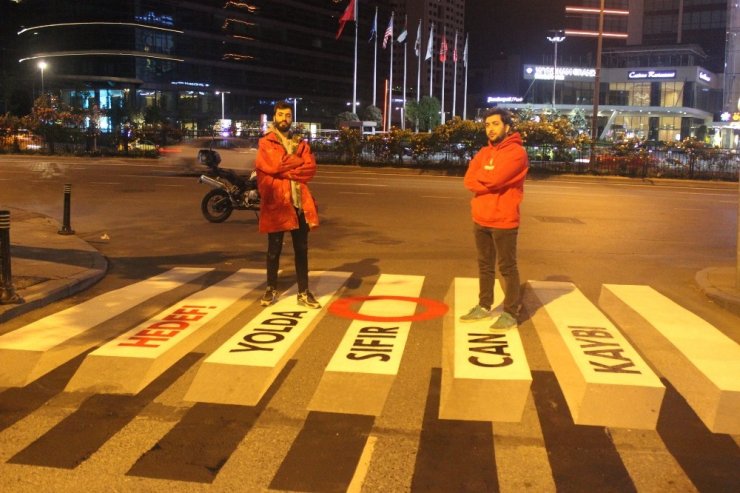 Sürücü ve vatandaşların bilinçlendirilmesi amacıyla yol ve yayaların geçiş noktasına kırmızı, beyaz ve siyah renklerin bulunduğu görsel çalışmalar yapan sanatçılar, görsellerin sosyal medya ve televizyonlar tarafından da kullanılacağı bildirildi.