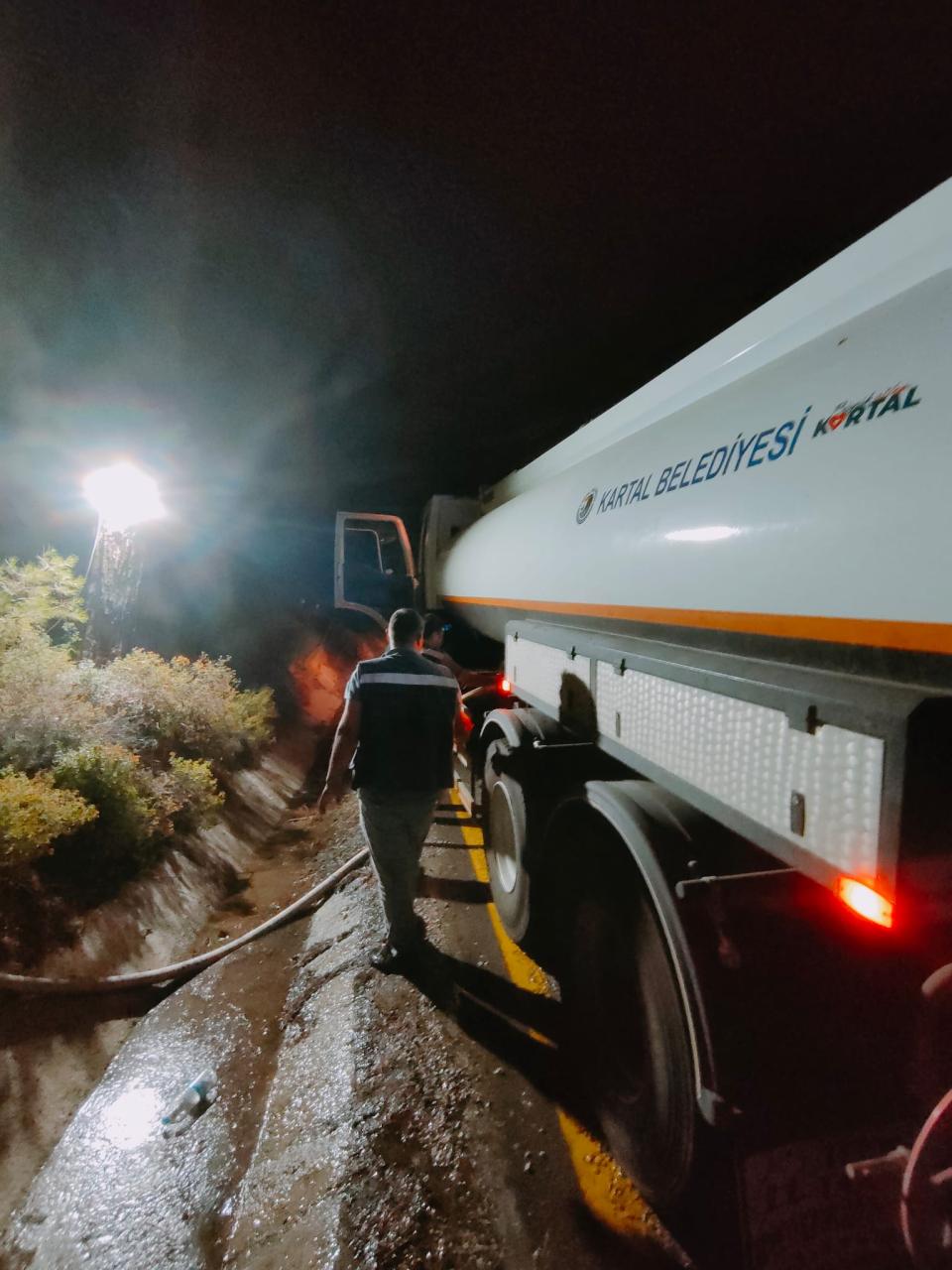 Yangının ikinci gününde bölgeden gelen yardım çağrılarına karşılık veren Kartal Belediyesi; iki su tankeri, bir arama kurtarma aracı ve toplamda sekiz personeliyle bölgede aktif görev alıyor.