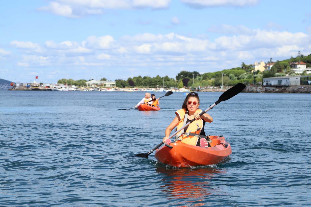 Uzman eğitmen kadrosu tarafından geniş güvenlik önlemleriyle verilen derslere ilgi yoğun oldu. Eğitimler sırasında kano kullanan katılımcılar can yeleği giyerken, sahil güvenlik botu da eğitimlere eşlik etti.