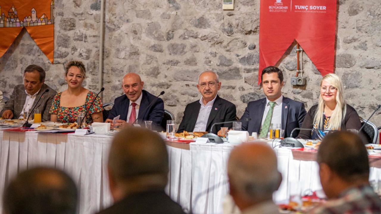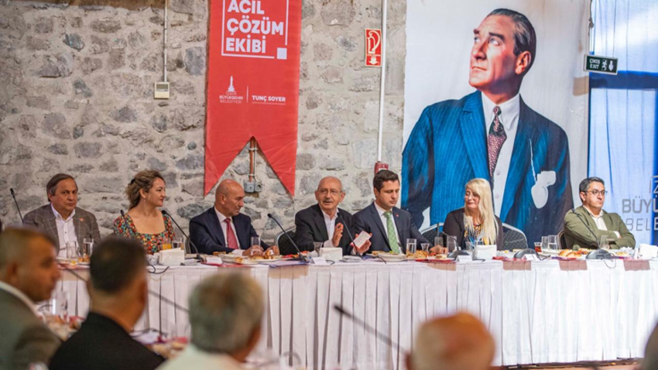 Cumhuriyet Halk Partisi (CHP) Genel Başkanı Kemal Kılıçdaroğlu, İzmir programının üçüncü gününde İzmir Büyükşehir Belediye Başkanı Tunç Soyer’in Acil Çözüm Ekipleri’nin sorunlarını hızla çözüme kavuşturduğu dezavantajlı mahallelerin muhtarlarıyla bir araya geldi. İzmir Büyükşehir Belediye Başkanı Tunç Soyer’in ev sahipliğinde Tarihi Havagazı Fabrikası’nda düzenlenen kahvaltıya Genel Başkan Kemal Kılıçdaroğlu, CHP Genel Başkan Yardımcısı Seyit Torun, CHP İl Başkanı Deniz Yücel, CHP Milletvekilleri Ednan Arslan, Tuncay Özkan, İZBETON Genel Müdürü Heval Savaş Kaya, Acil Çözüm Ekibi'nin yöneticileri, Bayraklı, Bornova, Buca, Karabağlar, Konak, Çiğli ve Menemen’den gelen, Acil Çözüm Projesi'nin uygulandığı 33 mahallenin muhtarı katıldı.