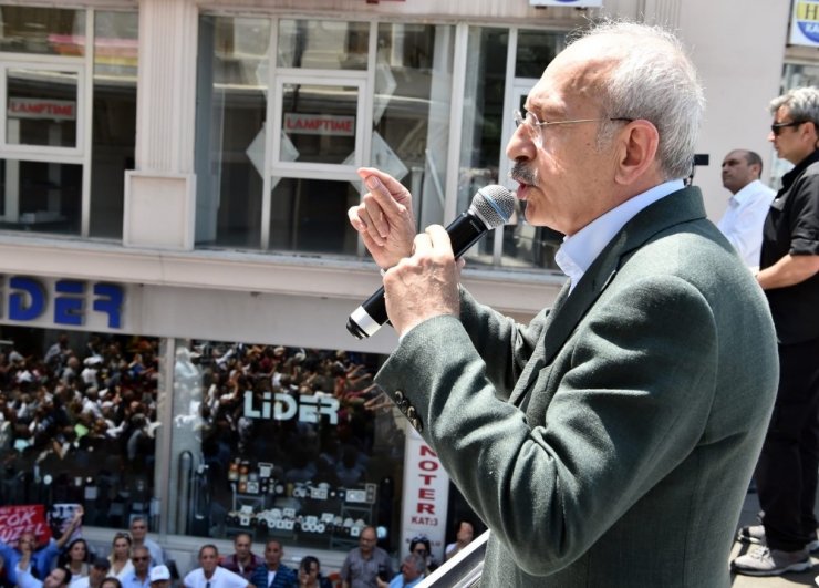 CHP Genel Başkanı Kemal Kılıçdaroğlu, Ramazan Bayramının 2'inci gününde partisinin il başkanlığı tarafından düzenlenen bayramlaşma programına katıldı. Parti binasında önce yönetici ve milletvekilleriyle bayramlaşan Kılıçdaroğlu, daha sonra cadde başındaki seçim otobüsünün üstüne çıkarak vatandaşlara konuşma yaptı. Kılıçdaroğlu, "Bizim bir görevimiz var. Bu ülkenin vatanseverleri olarak görevimiz var. Biz Cumhuriyeti demokrasi ile taçlandırmak zorundayız. Biz güzel ülkemizde gelişmiş ülkelerin standartlarını taşıyan bir demokrasiyi de bir demokrasi kültürünü bu ülkeye getirmek zorundayız. Bu amacın gerçekleşmesinde en büyük katkıyı sizler vereceksiniz. Birlikte yapacağız bunu. Demokrasiye ulaşmak kolay bir olay değildir. Demokrasiyi savunmak kolay bir olay değildir. Demokrasi için mücadele etmekte kolay bir olay değildir. Yeri geldiğinde demokrasi için mücadele edenler bedel ödemişlerdir. Ama bizler çocuklarımıza güzel bir Türkiye bırakacaksak, huzur içinde yaşayacağımız bir Türkiye bırakacaksak, bütün dünya da "Türkiye'de demokrasi var ve demokrasi mücadelesi var" dedirteceksek birlikte çalışmak zorundayız. Benim sözüm sadece Cumhuriyet Halk Partisi'ne oy veren vatandaşlara değil. Demokrasi bizim gibi düşünmeyen farklı düşünen herkes için geçerlidir. Ben nasıl onların düşüncelerine saygı göstereceksem onunda düşüncelerini özgürce ifade edebileceği bir rejimi savunuyorsam o da benim için aynı şeyleri düşünmelidir. O nedenle 23'ünde sandığa gideceğiz. Demokrasi için güzel bir Türkiye için, çok güzel şeylerin olması için birlikte sandığa gideceğiz. Benim sözüm özellikle geçen seçimlerde Ekrem Bey'e oy vermeyen vatandaşlarıma. Ayın 23 sandığa gideceksiniz. Elinizi vicdanınıza koyun" ifadelerini kullandı.