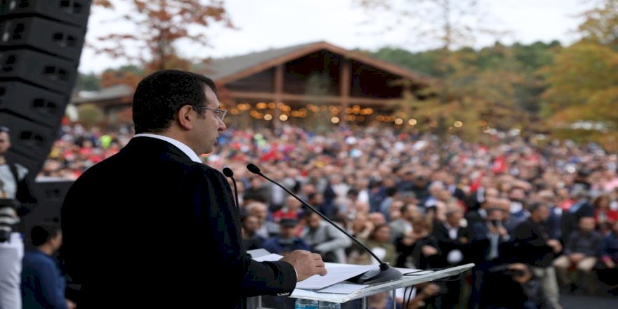 “Meclisimizde, çoğunluğu kullanarak, bazı noktaları meclise getirip, ‘Efendim, şuradaki ticaret alanını biz yeşil alana çevireceğiz’ diyorlar. Hatta usulsüz, hiçbir planlama prensiplerine uymayan, mülkiyetin geçmişine bakmaksızın, kendilerince geçersiz bir karar aldılar. Bir yanıyla sevindirici! Biz seçilir seçilmez, 2-3 ay içinde, muhalif olunca yeşil alan çığlığı atmaları beni mutlu etti. Açık söyleyeyim, çok mutlu oldum. Üzücü olan şu tabi: İETT Garajı’yla ilgili yeşil alan… Ya zaten İETT Garajı’yla ilgili aynı şeyi söyleyip duruyoruz yıllardır. Başka bir bakış açımız yok. İnsanlarımızın lehine kullanılması konusunda kararlılığımız var. Ama, alınan bu kararın içindeki aldatmacayı da söylemeden edemeyeceğim. Genel Başkanım, daha yeni, geçmişte değil 1-2 yıl önce KİPTAŞ’a, Başakşehir’de 266 milyon lira verip, satın aldıkları bir arsayı, imarını da bir miktar arttırarak, 17 milyon da proje parası harcayıp, toplamda 312 milyon liraya bir araziyi, fazla değil 10 ay önce, proje geliştirip satışa çıkartan yönetim, ‘Ben burayı yeşil alan yapacağım’ diye önümüze getiriyor. Valla kim inanır, bilmiyorum? Kimse buna inanmaz. Daha da kötüsü; Sen, milletin 312 milyon lirasını da çöpe atıyorsun.” İmamoğlu, konuşmasını, “Hem Cumhuriyet’imiz kutlu olsun hem demokrasimiz kutlu olsun. Yaşasın Cumhuriyet, yaşasın demokrasi diyorum. Kent ormanımız İstanbul’umuza hayırlı olsun” sözleriyle noktaladı.