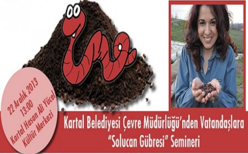 Ekosol Tarım ve Hayvancılık Kurucu Genel Müdürü Burçin Karababa’nın konuşmacı olarak katılacağı seminer 22 Aralık Pazar günü Kartal Hasan Ali Yücel Kültür Merkezi’nde saat 13:00’te yapılacak. Solucan gübresi üretimi, kırmızı Kaliforniya solucanının faydaları, solucan gübresinin evde nasıl üretileceği, gübrelerin bahçe ve saksılarda nasıl kullanılması gerektiği gibi konular anlatılacak. Kartal Belediyesi Çevre Koruma ve Kontorl Müdürlüğü’nün düzenlediği seminer soru ve cevap şeklinde düzenlenecek.