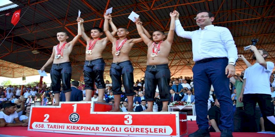 KIRKPINAR YAĞLI GÜREŞLERİNDE MİNİKLERİN MADALYALARINI İMAMOĞLU VERDİ