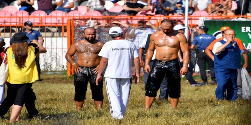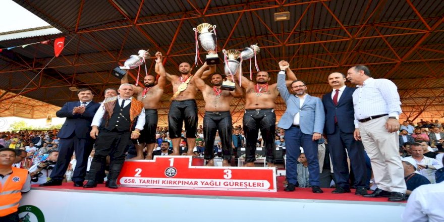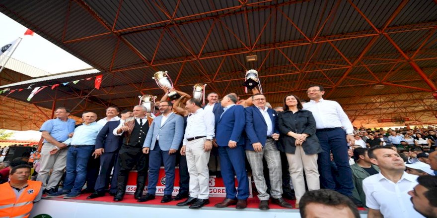 İstanbul Büyükşehir Belediye (İBB) Başkanı Ekrem İmamoğlu, 658. Kırkpınar Yağlı Güreşleri'ni Edirne Sarayiçi Er Meydanı'nda, Gençlik ve Spor Bakanı Mehmet Muharrem Kasapoğlu ve Edirne Belediye Baş