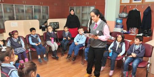 Beylikdüzü Haldun Taner İlköğretim Okulu 1.sınıf öğrencileri Edebiyat Öğretmeni Fethiye Avul eşliğinde her hafta düzenli olarak Cahit Zarifoğlu Lisesi’nde Beylikdüzü Belediyesi’nin desteği ile açılan şube kütüphanesinde kitap okuma saati programına katılıyorlar.