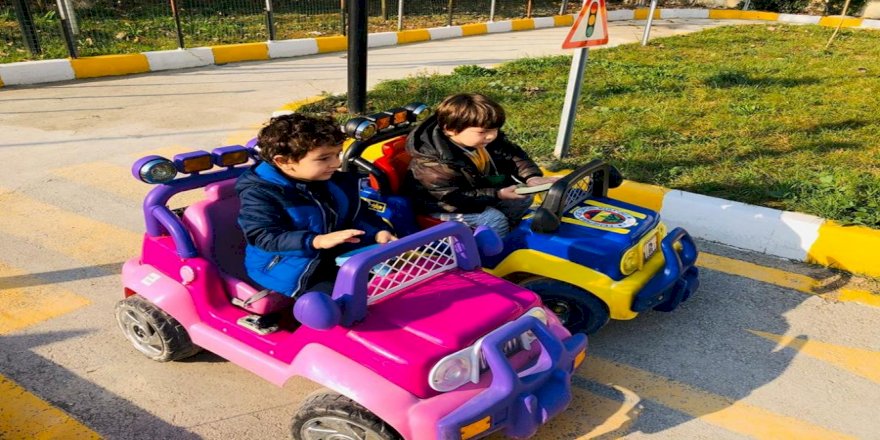 Başarılı çalışmalarıyla göz dolduran Maltepe Belediyesi’ne bağlı 9 kreşte eğitim gören çocuklar, Göztepe Çocuk Trafik Parkı’na giderek otomobillerin koltuğuna oturdu ve trafik kurallarını uygulayarak öğrendi. Zübeyde Hanım Gündüz Çocuk Bakım Evi’nde eğitim gören 3-4 yaş grubu yaklaşık 250 miniğe, önce trafik levhaları ve güvenlik bilgileriyle ilgili interaktif bir sunum verildi. Burada eğitmenlerini can kulağıyla dinleyen çocuklar, daha sonra parkura geçerek direksiyon başına oturdu. Otomobillere binerken oldukça eğlenceli olduğu gözlemlenen çocuklar, parkurda trafik kurallarını uygulayarak öğrendi. Yer yer zorluk yaşayan ve kuralları ihlal eden miniklere, görevli trafik polisleri de yardım ederek kuralları doğru biçimde uygulamalarını sağladı. Çocuklara kreş sorumluları ve öğretmenler de eşlik etti. (25.11.2019)