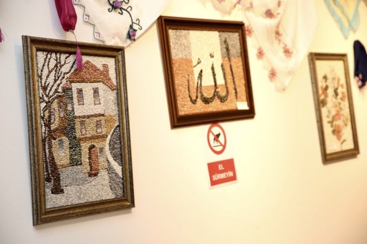 Cennet, Halkalı, İnönü, Kanarya, Mehmet Akif ve Yarımburgaz Bilgi Evleri'nde açılan iğne oyası kursuna kayıtlı 80 velinin 500 eseriyle Cennet Bilgi Evi'nde açılan çakıl taşı kursuna kayıtlı 20 velinin 14 tablosunun yer aldığı sergi SKSM'de ziyaret edilebilir.