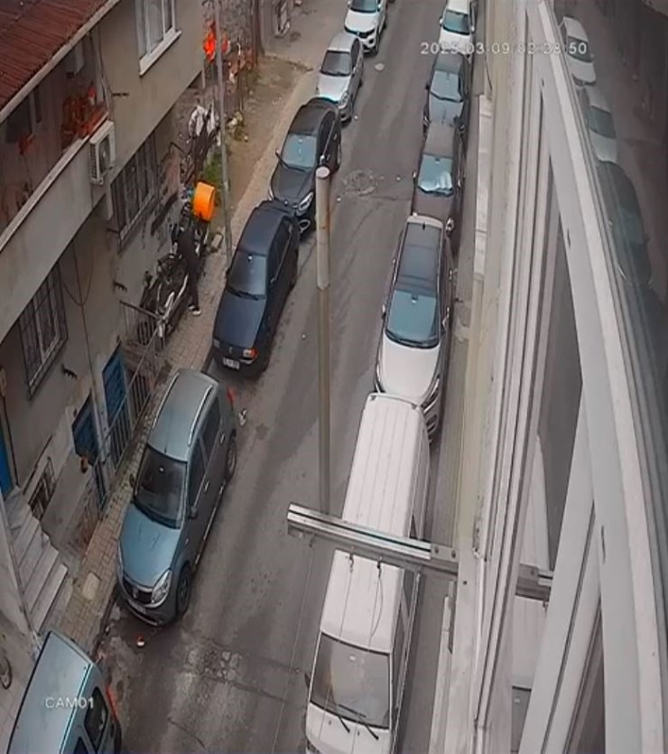 Öte yandan, hırsızlık anı kameraya yansıdı. Görüntülerde başındaki kaskla yüzünü gizleyen hırsızın, bir süre uğraştıktan sonra motosikleti çalıp kaçtığı görüldü.