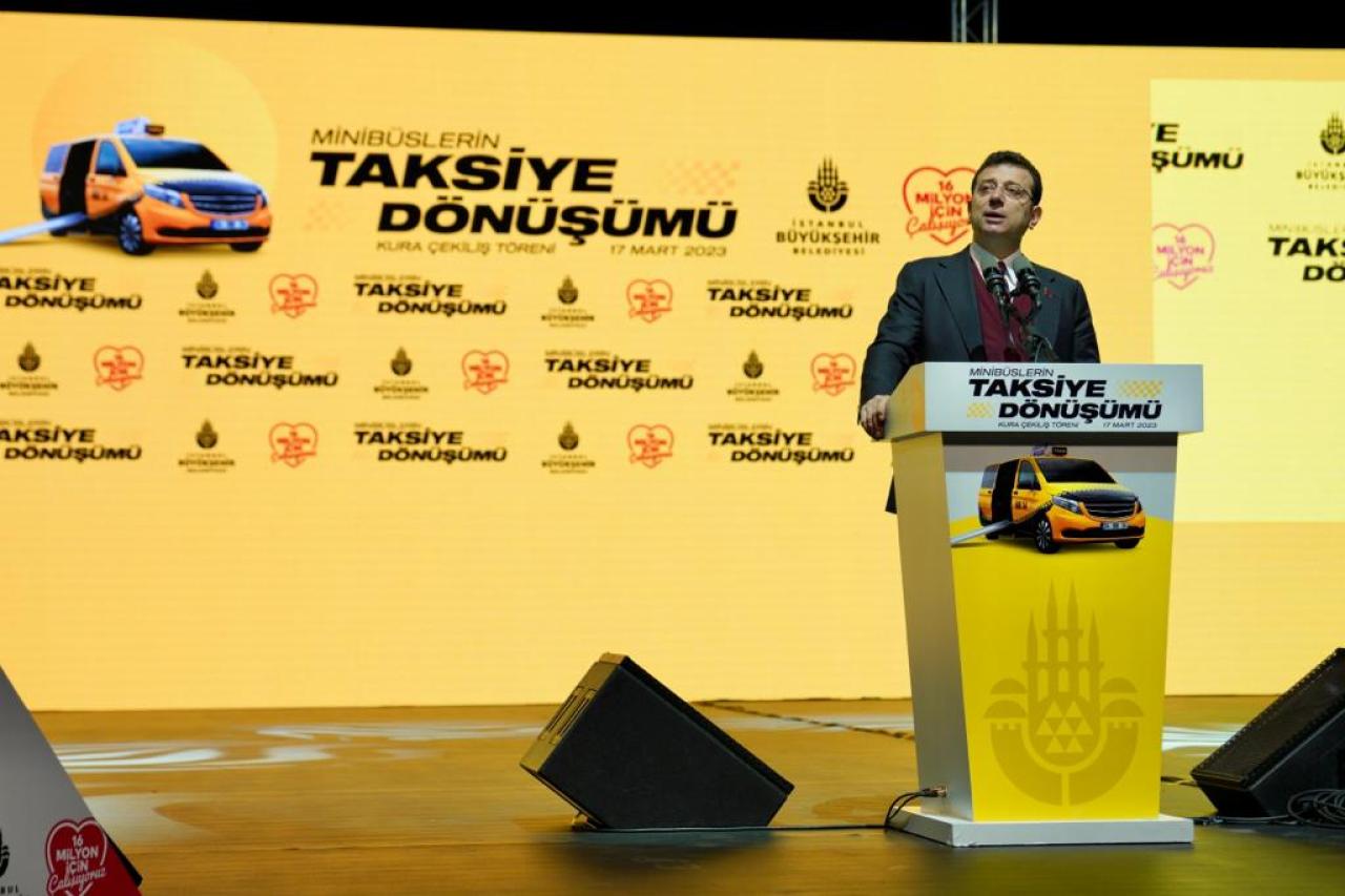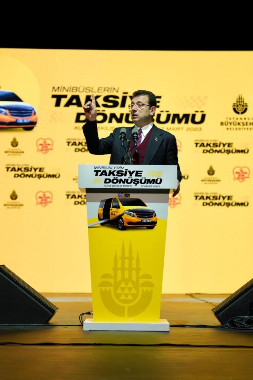 İstanbul Büyükşehir Belediyesi (İBB), geçtiğimiz aylarda tanıtımını gerçekleştirdiği 1.803 minibüs ve 322 taksi dolmuşun “yeni taksi”ye dönüştürülmesi için yapılan başvuruları tamamladı. 2 bin 532 başvuru içerisinden yapılacak kura çekimi için, Küçükçekmece Yahya Kemal Beyatlı Kültür Merkezi’nde tören düzenlendi. Tören; İBB Başkanı Ekrem İmamoğlu, İYİ Parti İstanbul İl Başkanı Coşkun Yıldırım, Küçükçekmece Belediye Başkanı Kemal Çebi ile CHP milletvekilleri Turan Aydoğan ve Gökan Zeybek’in katılımlarıyla gerçekleşti. Tören öncesinde 5 farklı firmanın, İBB’nin ve esnafın talepleri doğrultusunda ürettiği örnek taksileri inceleyen İmamoğlu, kura çekimi öncesinde bir konuşma yaptı.
