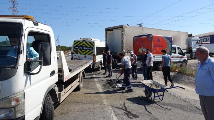 Kaza nedeniyle yol üzerinde trafik yoğunluğu oluştuğu gözlendi.