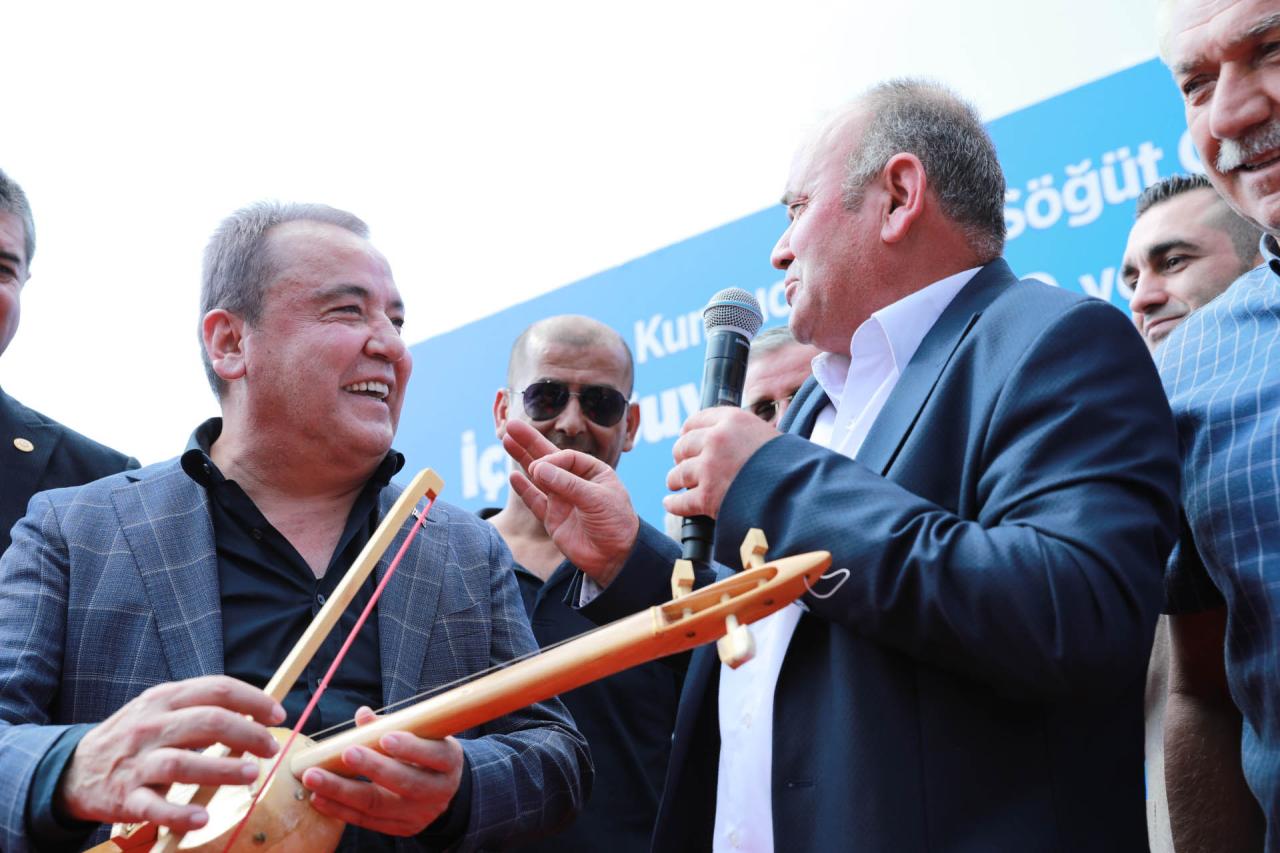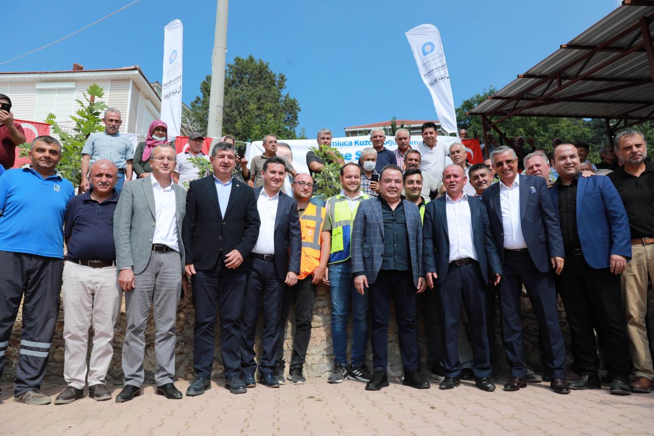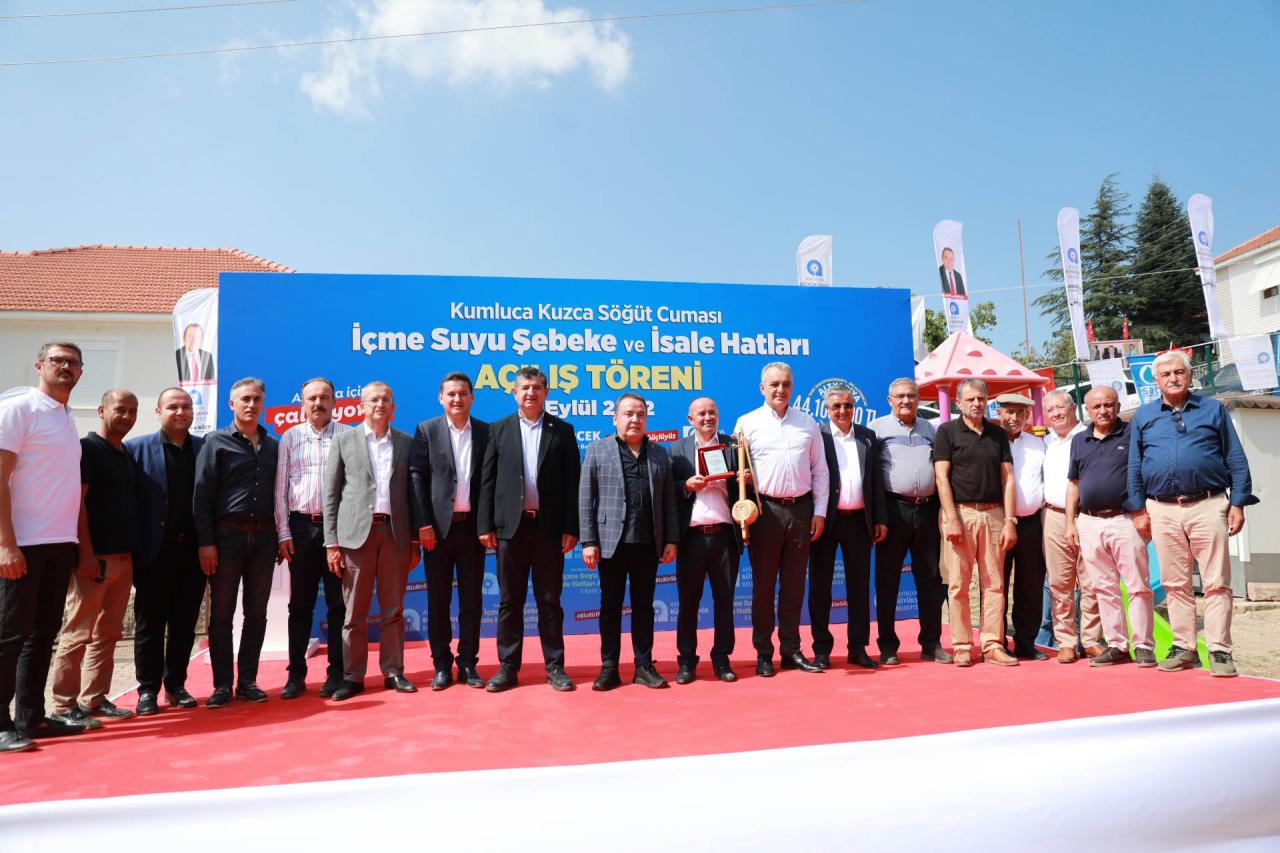 Kuzca Mahalle Muhtarı Ali Okur, tören sorunda Başkan Muhittin Böcek’e teşekkür plaketi ve kabak kemane hediye etti. Başkan Böcek ve protokol üyeleri açılışın ardından musluklardan ilk suyu akıttı.