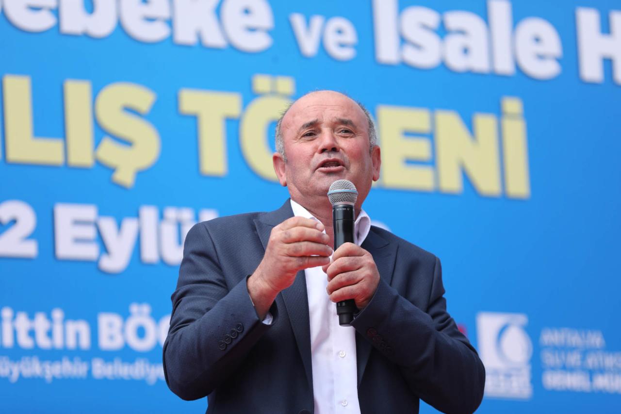 Kumluca Belediye Başkanı Mustafa Köleoğlu da, bölgenin yıllardır süregelen su ve yol sorunlarını Başkan Böcek’in çözdüğünü belirterek, “Göreve gelir gelmez doğup büyüdüğümüz toprakların yol, su gibi kanayan sorunlarına el koyduğu için Büyükşehir Belediye Başkanımız Muhittin Böcek’e teşekkürlerimizi sunuyorum. Sağ olun var olun diyorum” diye konuştu.