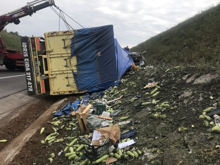 Yarım saat süren çalışma sonucunda araçta sıkışan sürücü itfaiye ekipleri tarafından kurtarılarak sağlık ekiplerine teslim edildi. Yaralıyı teslim alan sağlık ekipleri ise bilincinin kapalı olması nedeniyle uzun süre kalp masajı yaptı. Ardından sedyeye alınan yaralı ambulansla çevredeki hastaneye kaldırılarak tedavi altına alındı. Olayın ardından devrilen kamyon ise vinç yardımıyla bulunduğun yerden kaldırıldı. Kaza nedeniyle kamyonun kasasındaki salatalıklar ise çevreye saçıldı. Yaralının yakını, "Antalya'dan İstanbul'a sebze götürüyordu. Kaza yapmış, yaralanmış" dedi.