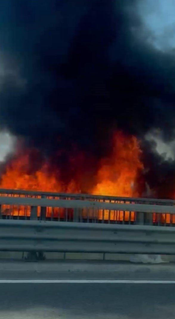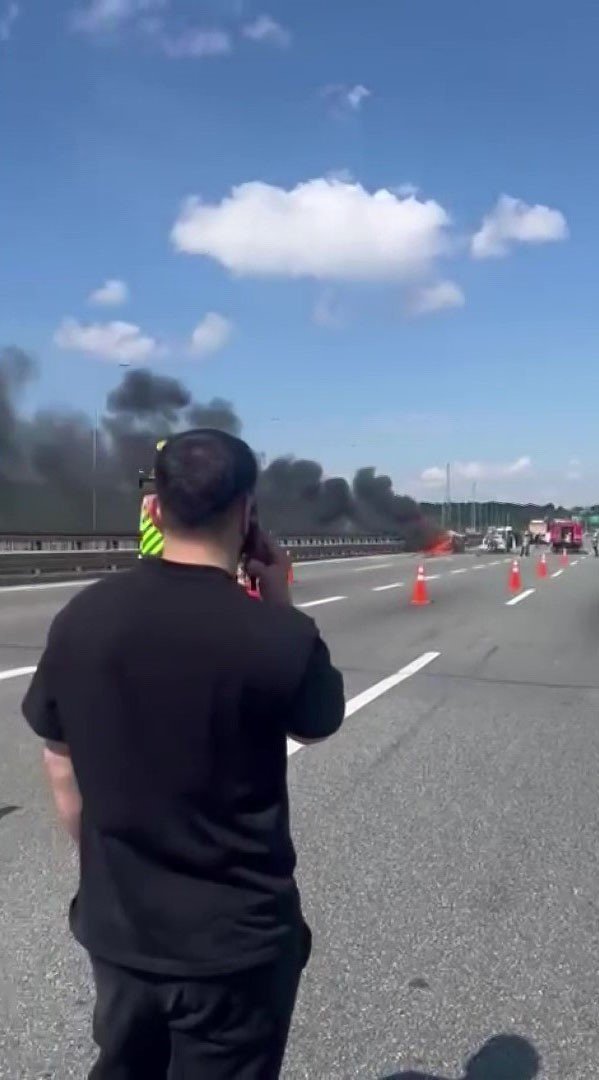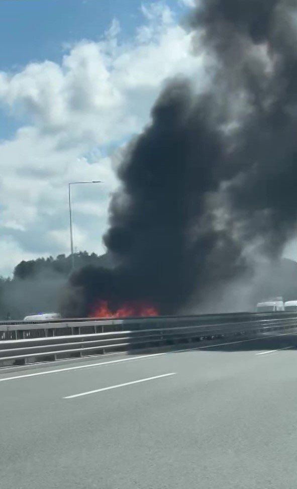KUZEY MARMARA OTOYOLU’NDA ZİNCİRLEME KAZA SONRASI 2 ARAÇ YANDI