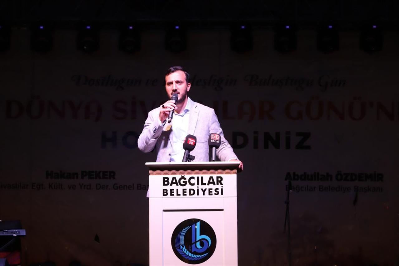 Sivaslılardan övgüyle bahseden Bağcılar Belediye Başkanı Abdullah Özdemir ise “Sivas, Selçuklu ve Osmanlı’nın kadim şehri. Cumhuriyetin temellerinin atıldığı önemli bir şehir. Aşıkların ve ozonların şehri. ‘Milletine namlusunu uzatana ben selam vermem’ diyen Muhsin Yazıcıoğlu’nun şehri. Cumhurbaşkanımız Recep Tayyip Erdoğan’ın ‘Sırtını Sivaslılara dayayanın sırtı yere gelmez’ dediği kadim şehir. Muhterem Sivaslı hemşehrilerim, böylesine güzel ve anlamlı bir programa Bağcılar Belediyesi olarak ev sahipliği yapmaktan onur ve şeref duyuyorum. Bağcılar’da resmi kayıtlara göre 38 bin Sivaslı kardeşimiz var. Hep birlikte huzur ve güven içinde yaşıyoruz” şeklinde konuştu.