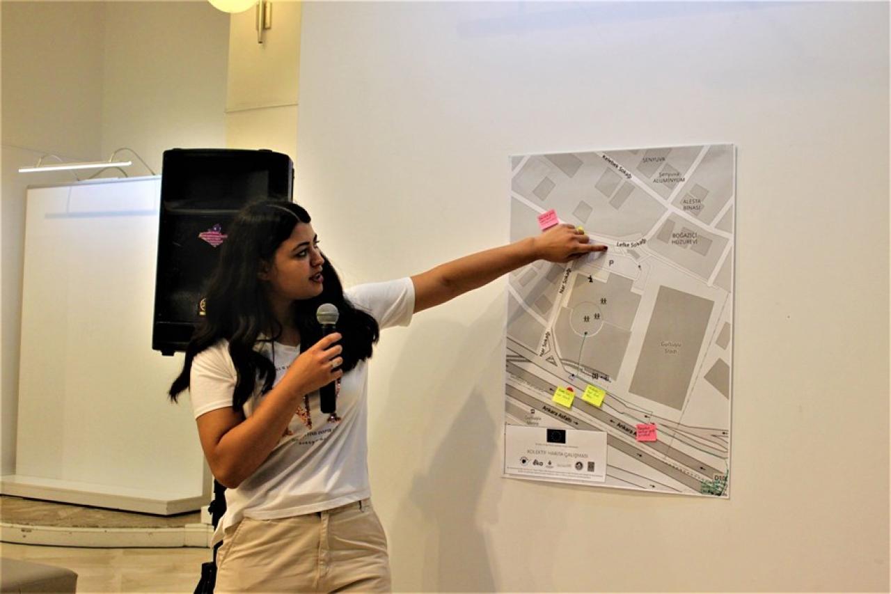 SOKAKLARDA KADIN OLMAK İstanbul Teknik Üniversitesi Mimarlık Fakültesi Öğretim Üyesi ve İstanbul Kentsel Hareketlilik Laboratuvarı temsilcisi İmge Akçakaya Waite, konuşmasında, ‘‘IstanbulON, sürdürülebilir, kapsayıcı, çağı yakalayan, toplum odaklı hareketlilik çözümlerini toplumla birlikte üreten, üniversite, kamu ve özel sektörün farklı bileşenlerini sivil toplum ile buluşturan yaşayan bir laboratuvar olma özelliği taşımaktadır. Sizlerle bu projede buluşmamızın ana sebebi, sizlerin önerilerinizle bu projeyi geliştirmek ve özellikle kadın olarak sokaklarda var olmanın getirdiği zorlukları ulaşım alanında tespit ederek, önleyici tedbirleri pilot olarak seçilen bu bölgede uygulamaya koymayı hedefliyoruz’’ dedi. Son olarak kürsüye davet edilen Sokak Bizim Derneği temsilcisi ve Mimar Sinan Güzel Sanatlar Üniversitesi Şehir ve Bölge Planlama Bölümü öğretim üyesi Arzu Erturan, ‘‘TOPUK Projesi, Prof. Dr. Türkan Saylan Kültür Merkezi bir pilot çalışma olarak yürütülecektir. Sizlerin öneri ve tespitleriniz sayesinde bizde bir yol haritası çizerek projeyi şekillendireceğiz. Bu konuda buraya gelerek bizlere katkı sağladığınız için teşekkür ederiz’’ açıklamasında bulundu. Tarih : 04.07.2022 Haber Fotoğrafları