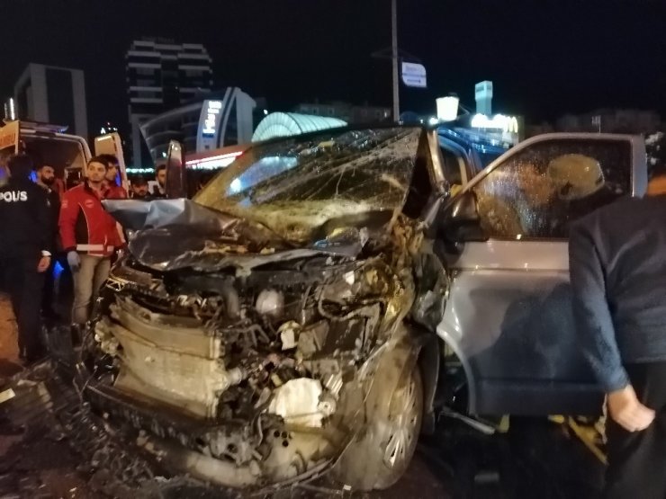 Minibüs içerisindeki yaralıyı itfaiye ekipleri çıkardı