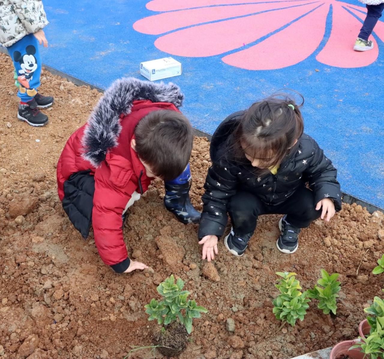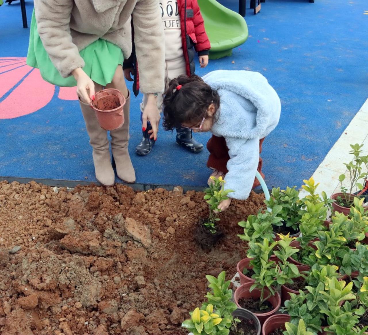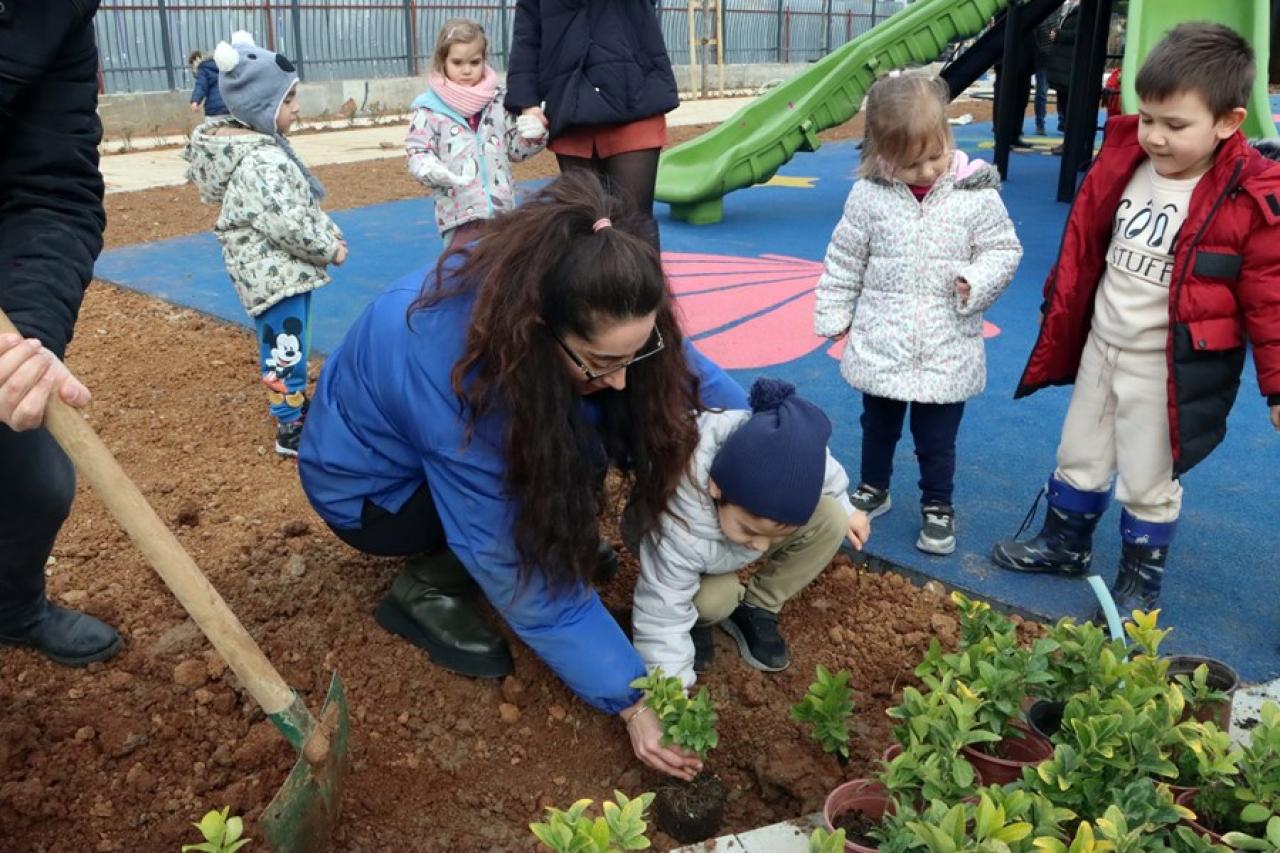 Maltepe Belediyesi’nin daha yeşil bir Maltepe için yapımına başladığı İdealtepe Parkı’nın minik misafirleri, parka çeşitli bitkiler dikerek yeşile olan duyarlılıklarını gösterdiler.