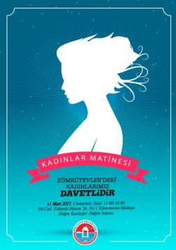 Etkinlik, Prof. Dr. Türkan Saylan Kültür Merkezi’nde düzenlenecek kokteylle devam edecek. Belediyedeki kadın çalışanların katılacağı ve 19.00-23.00 saatleri arasında düzenlenecek kokteylde, müzik dinletisi yapılacak ve kadınların toplumda sıkışmışlığını konu alan “Uyanış” adlı tiyatro sahnelenecek. Tiyatro sonrası Safa Zakir, Arzu, Gülay ve Serkan Boran sahne alarak unutulmaz bir şenliğe imza atacaklar. Etkinlikler kapsamında, 6-16 Mart tarihleri arasında mahallelerde de bir dizi program yapılacak. 11 Mart’ta ise Zümrütevler Mahallesi'nde “Kadınlar Matinesi” düzenlenecek. (03.03.2017)
