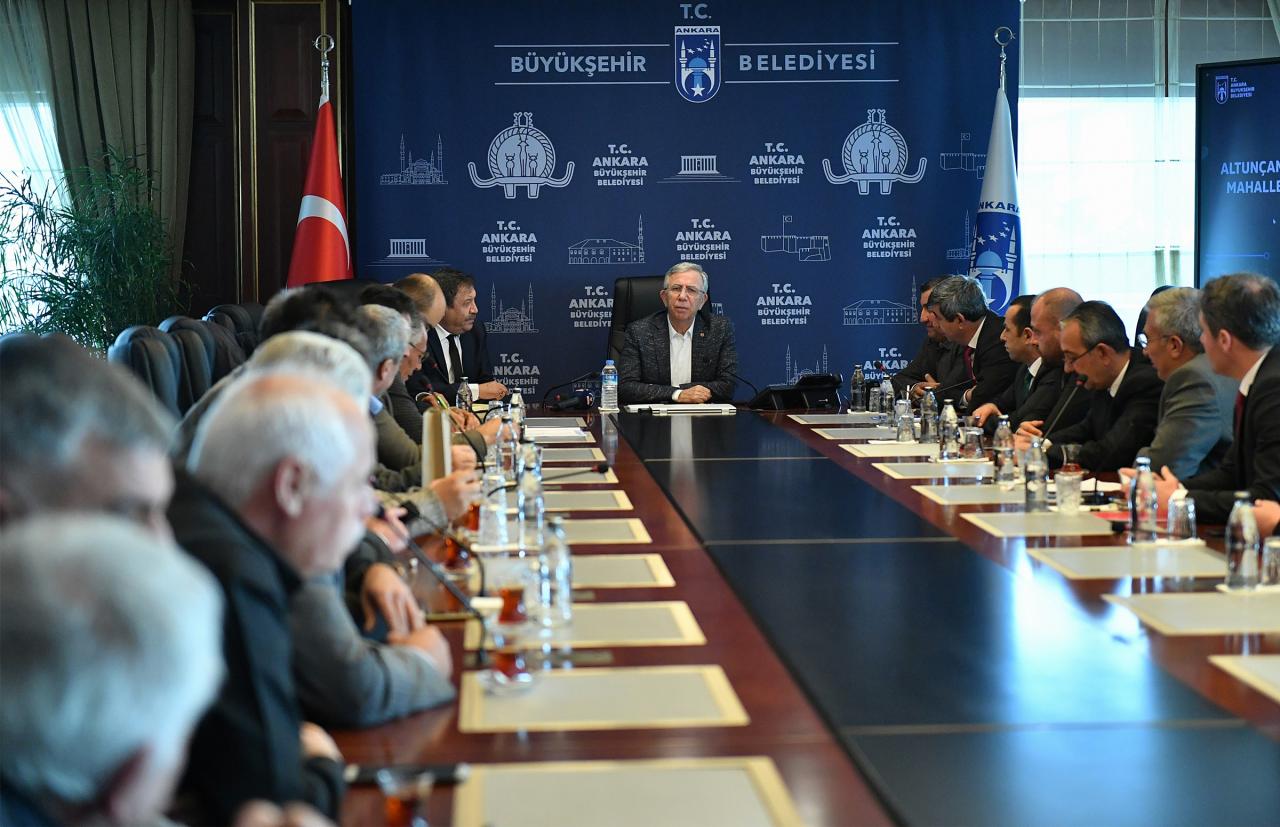 ABB Başkanı Mansur Yavaş, Büyükşehir Belediye Başkanlık Makamında Gölbaşılımuhtarları ağırladı.Toplantıya; ABB Özel Kalem Müdürü Yüksel Arslan, ABB bürokratları katıldı.