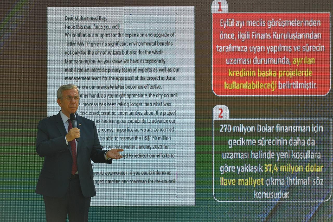 Ankara Büyükşehir Belediye Başkanı Mansur Yavaş, Başkentin acil ihtiyaçları arasında bulunan Tatlar Atıksu Arıtma Tesisi’nin kapasite yetersizliği ve dış finansman taleplerine ilişkin basın toplantısı düzenledi.